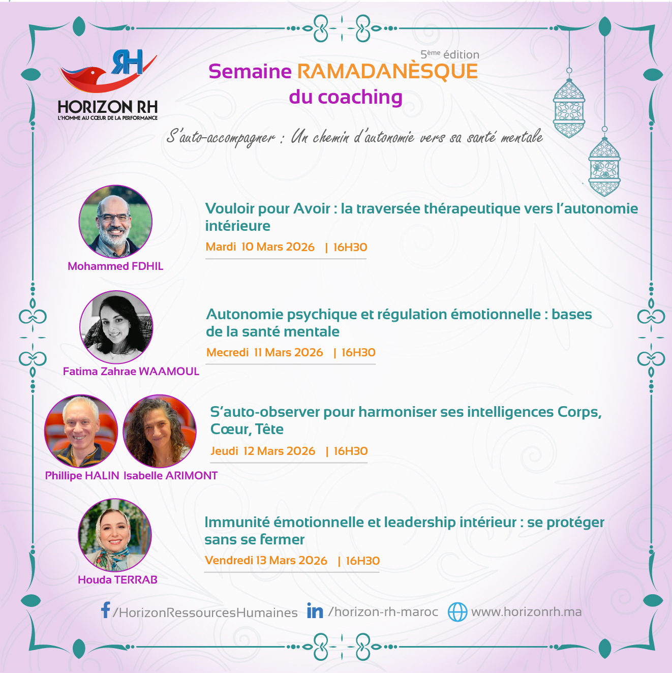 Durant ce mois de Ramadan, nous dédions une semaine à toute personne souhaitant prendre un temps de réflexion et d’inspiration autour de son développement personnel et professionnel, dans une dynamique de partage, de connexion et d’élévation collective.
